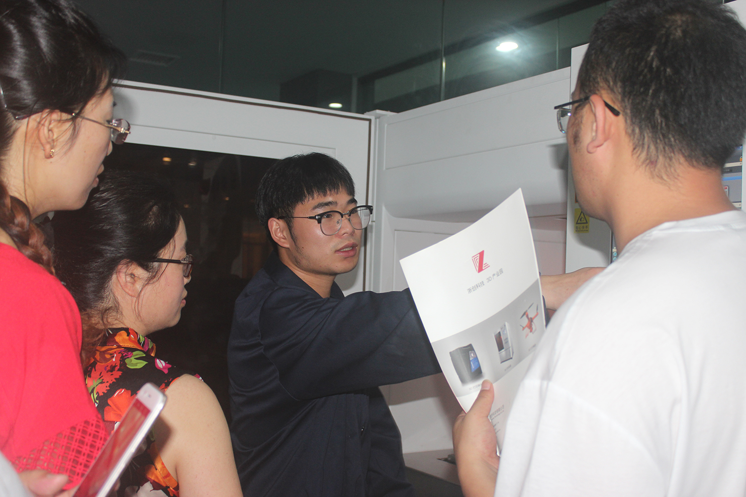 在3D打印車間,總經理陶霖珊、生產主管陶列剛以及浙創科技工作人員就3D打印的原理向參訪領導進行了詳細的介紹,并針對參訪領導提出的問題進行一一解答。