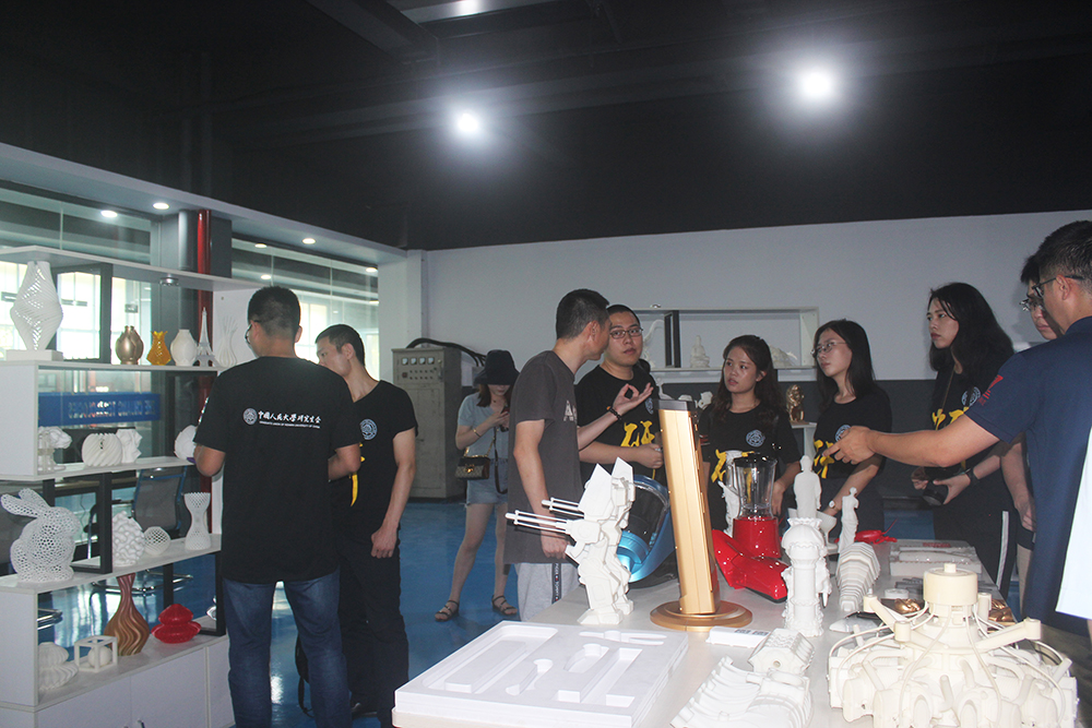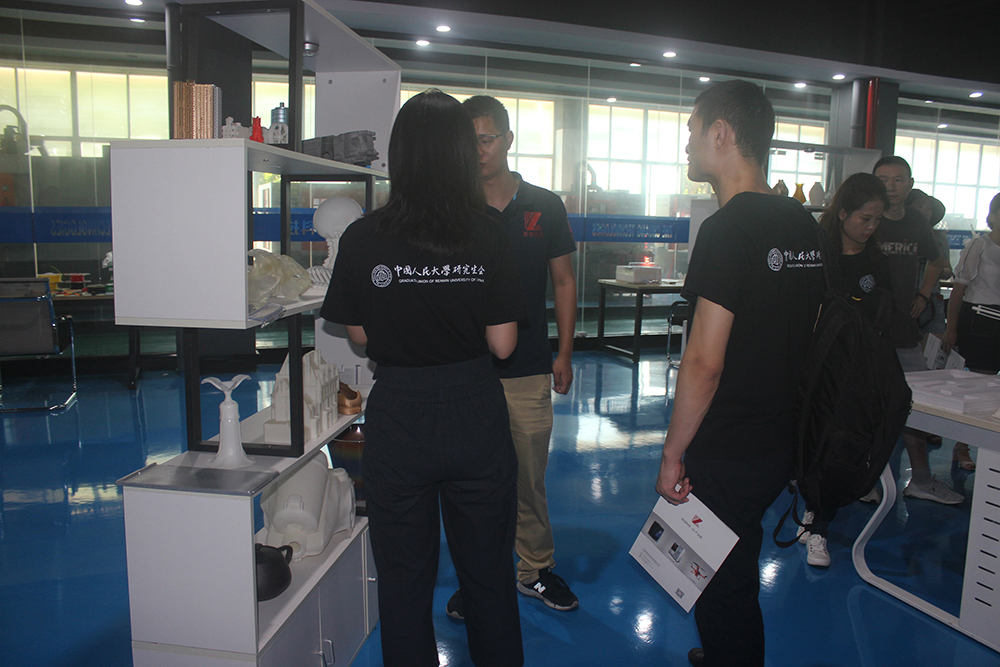 人大師生在陶董事長的帶領下來到了位于公司一樓的3D打印車間。在3D打印車間,陶董事長通過正在工作的工業級SLA成型3D打印機,向人大師生講解了3D打印技術在模具行業的優勢。3D打印技術大大減少了研發成本,促進了制造行業不斷創新發展。