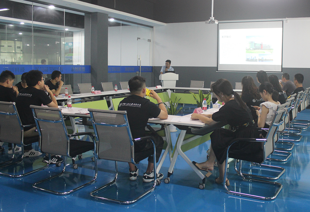 參觀車間結束后,人大師生在浙創會議室與浙創科技領導層進行了研討會。研討會之初,總經理陶霖珊向人大師生介紹了浙創科技的歷程、開展業務以及未來規劃,并通過視頻向人大師生科普了幾種常見的3D打印技術