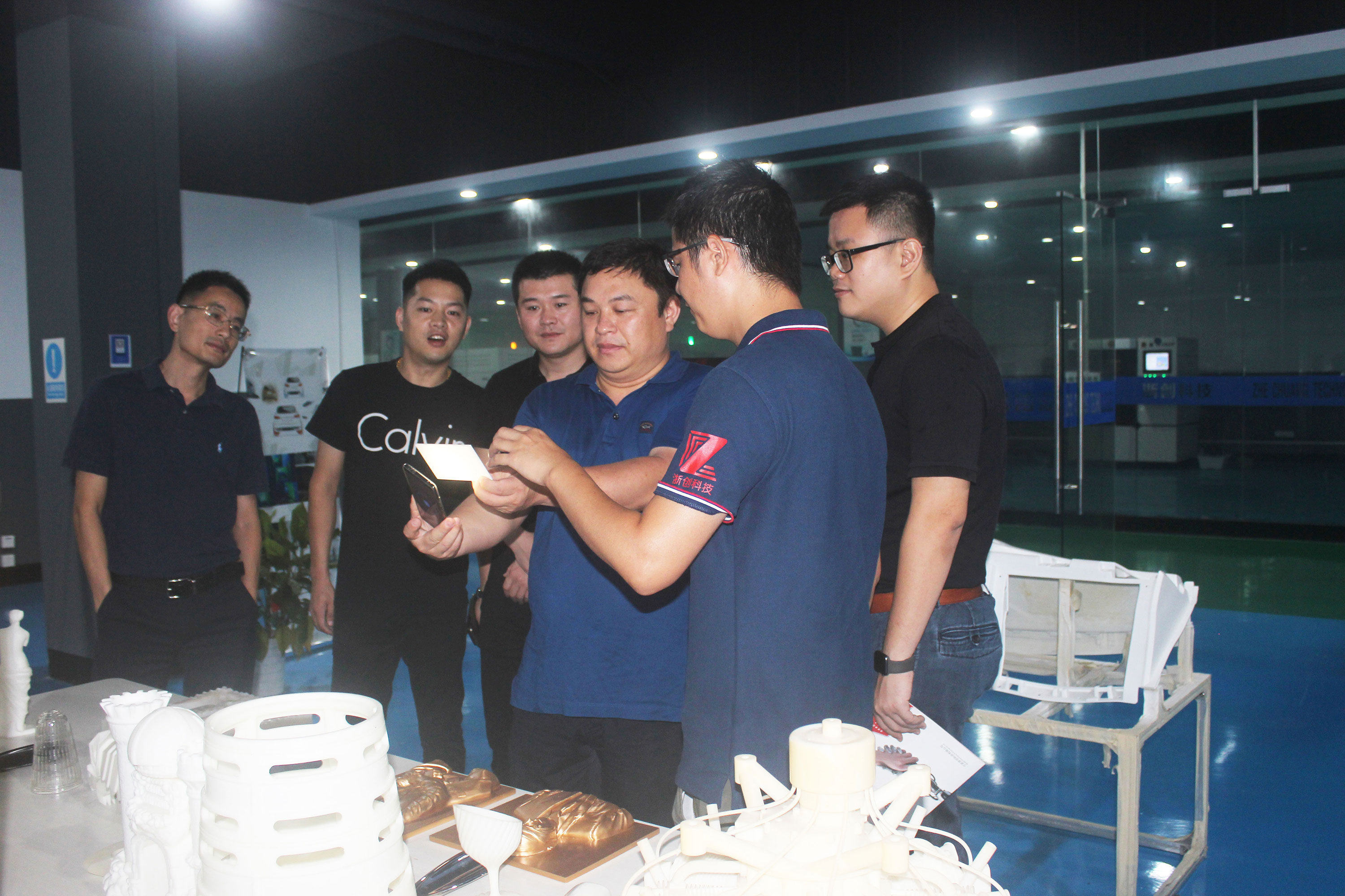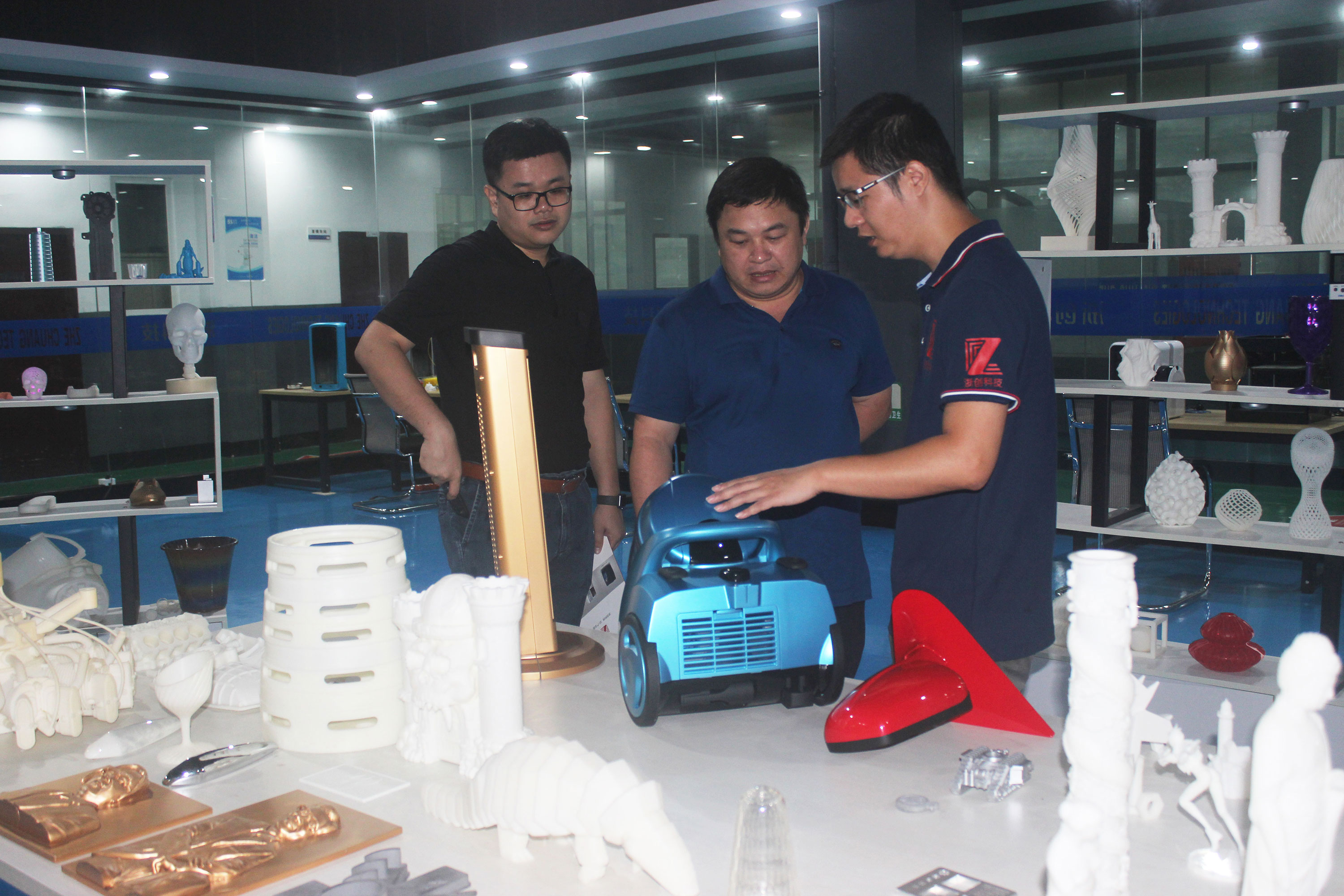 王副市長(zhǎng)一行參觀(guān)了3D打印車(chē)間、3D打印樣品間,觀(guān)察3D打印機(jī)打印過(guò)程。在樣品間,王副市長(zhǎng)了解了3D打印在汽車(chē)配件、日用家電、文創(chuàng)教育等領(lǐng)域的具體應(yīng)用案例,并給予了高度評(píng)價(jià)。隨著智能制造的發(fā)展,3D打印技術(shù)在未來(lái)的應(yīng)用會(huì)愈加廣闊。