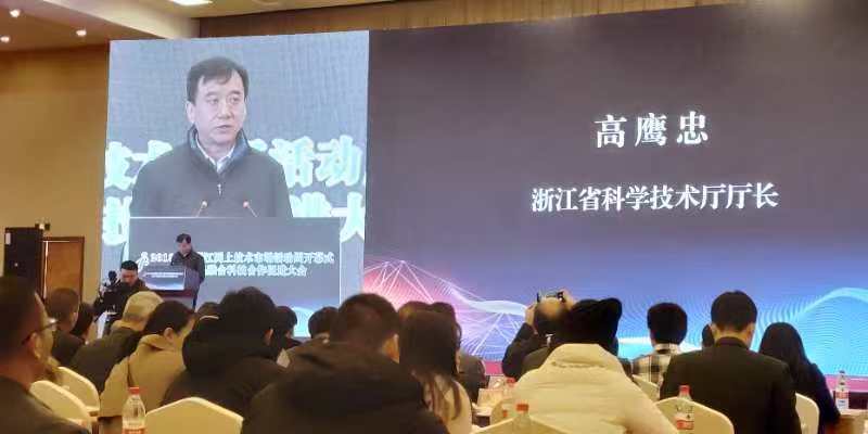 12月12日,2018中國浙江網上技術市場活動周開幕式暨軍民融合科技合作促進大會在杭州之江飯店舉行。開幕式由浙江省人民政府副秘書長董貴波主持,浙江省人民政府副省長高興夫、省科技廳廳長高鷹忠省軍區黨委常委、辦公室主任朱云忠等領導出席開幕式并發表講話