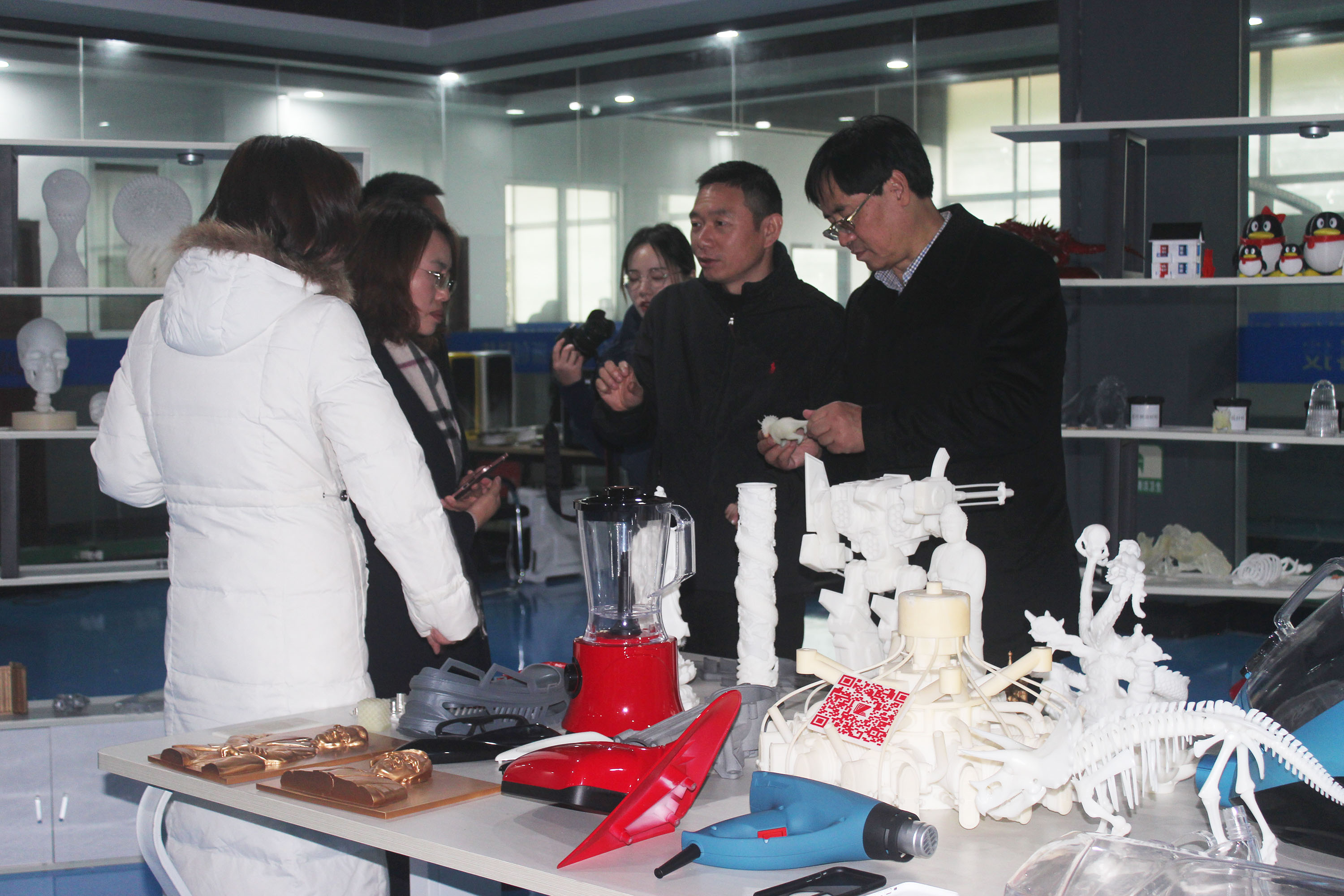 隨后,陶董事長帶領(lǐng)上海八號橋考察團(tuán)一行參觀了3D打印車間、3D打印樣品間,了解3D打印的成型原理,觀察3D打印機(jī)的打印過程。在3D打印樣品間,陶董事長向上海八號橋考察團(tuán)一行介紹了3D打印應(yīng)用的優(yōu)勢。隨著3D打印的普及應(yīng)用,昂貴的開模費(fèi)將成為過去式。以往制造業(yè)幾百萬的模具費(fèi),借助3D印能輕松省掉一半多。手板成本的降低,會進(jìn)一步推動企業(yè)創(chuàng)新設(shè)計(jì)。